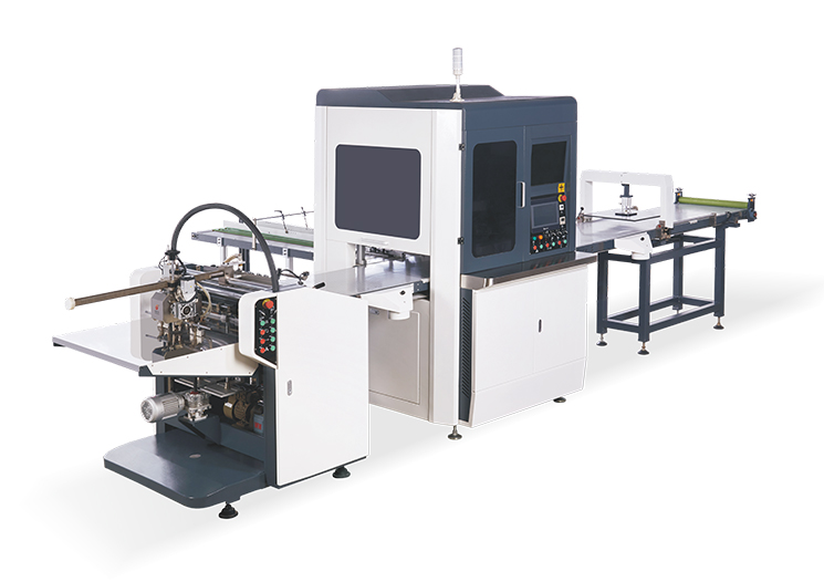 本機(jī)是加工精裝盒,天地盒的理想自動化設(shè)備,通過人工在流水線上將內(nèi)盒和面紙定位好,再將定位好的紙盒放進(jìn)機(jī)器木模上,機(jī)器自動運(yùn)行,糊盒、折邊壓泡一次性完成。每分鐘可生產(chǎn)精裝盒多達(dá)30個(gè),大大提高了精裝盒的生產(chǎn)效益,節(jié)省了生產(chǎn)成本。因每個(gè)動作都是機(jī)械式完成,使產(chǎn)品標(biāo)準(zhǔn)化生產(chǎn),大大提高了產(chǎn)品的質(zhì)量。